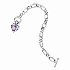 Sterling Silver Lavender Cz Heart Bracelet