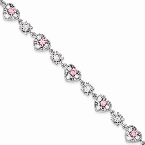 Sterling Silver Lavender & Pink Cz Bracelet
