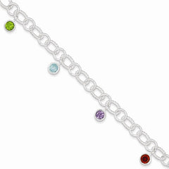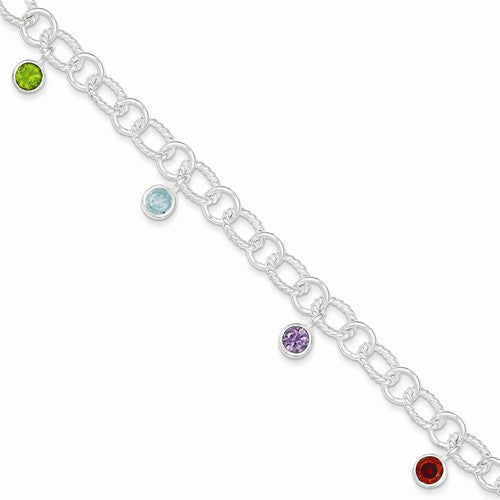 Sterling Silver Mixed Stone Dangle Twisted Link Bracelet