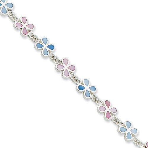Sterling Silver Mother Of Pearl Flower Bracelet