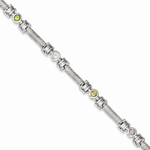 Sterling Silver Multi-Color Semi-Precious Stone Bracelet