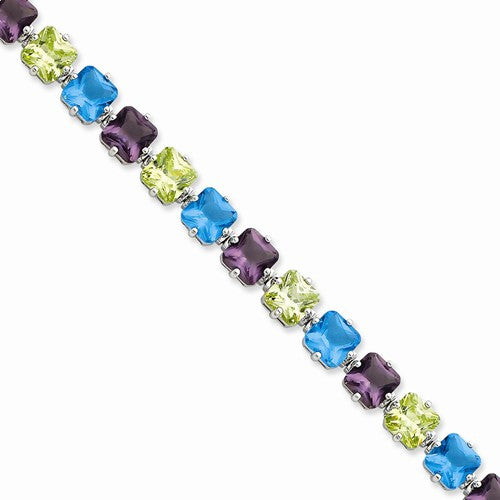 Sterling Silver Multicolor Glass & Cz Bracelet