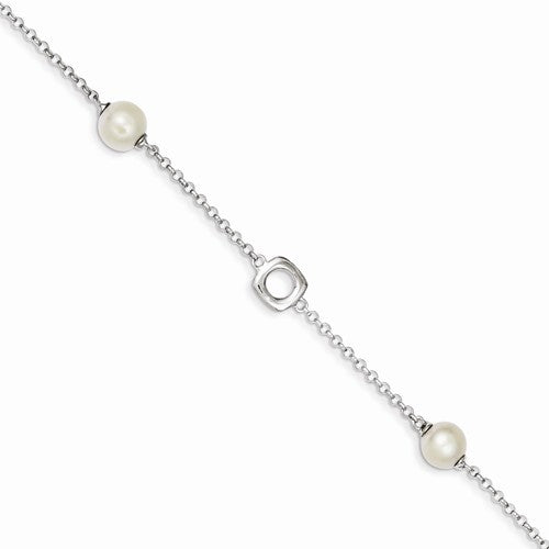 Sterling Silver Open Squares and Fw Pearl Toggle Bracelet