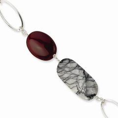 Sterling Silver Oval Links Carnelian & Zebra Bracelet