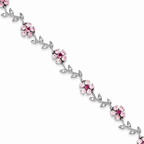 Sterling Silver Pink and Clear Cz Flower Bracelet