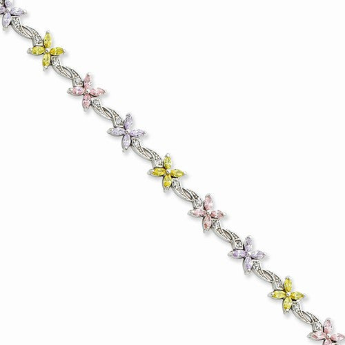 Sterling Silver Pink Yellow & Clear Cz Bracelet
