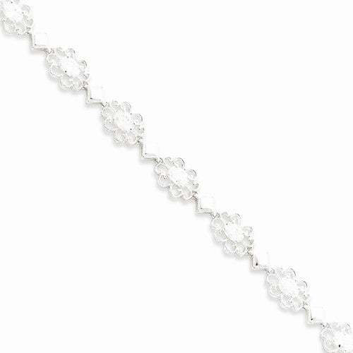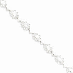 Sterling Silver Polished Fancy Floral Cz Bracelet