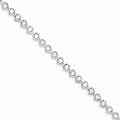 Sterling Silver Polished Fancy Heart Cz Bracelet