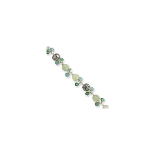 Sterling Silver Prehnite Amazonite Aventurine Silver Bead Bracelet