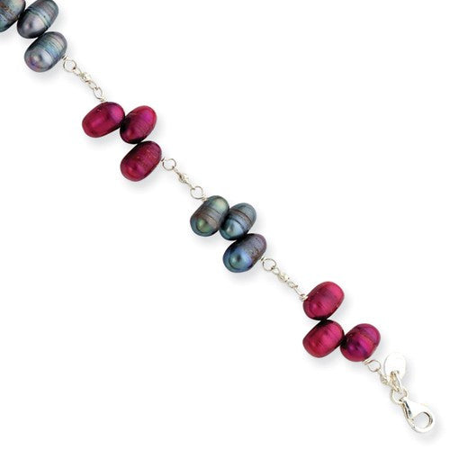 Sterling Silver Purple & Grey Cultured Pearl Bracelet
