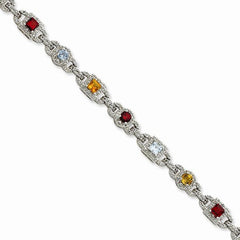 Sterling Silver Rainbow Semi-Precious & Cz Bracelet