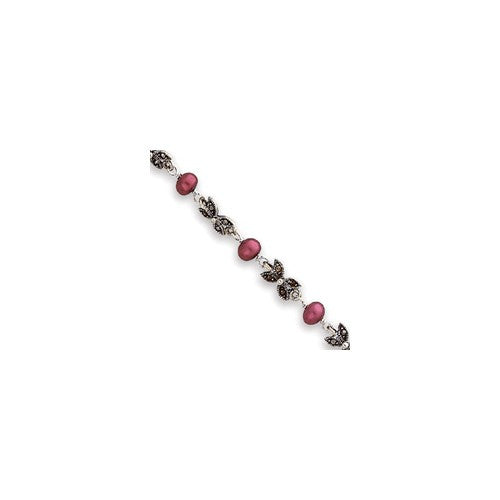 Sterling Silver Red Cultured Pearl & Marcasite Butterflies Bracelet
