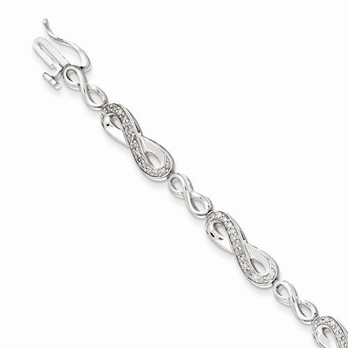 Sterling Silver Rhodium Plated Diamond Figure Link Bracelet