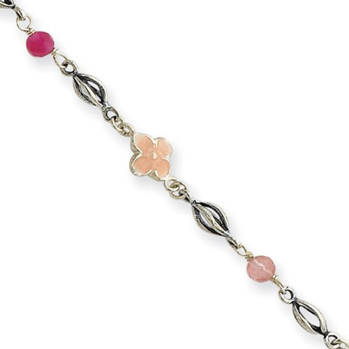 Sterling Silver Strawberry Cherry Quartz Dangle Bracelet