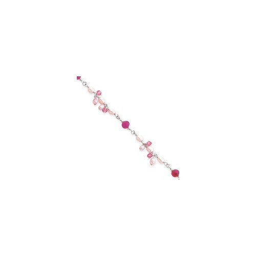 Sterling Silver Strawberry Quartz Pink Cultured Pearl Crystal Bracelet