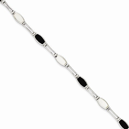 Sterling Silver Syn Onyx & Mother Of Pearl Bracelet