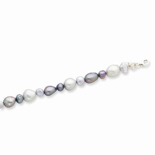 Sterling Silver White & Grey Freshwater Cultured Pearl Bracelet