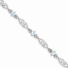 Protected by our 30-Day Risk Free Returns!Metal: Sterling SilverLength: 7 inchWidth: 5 mmStone: Diamond, AquamarineCT Weight: 0.006Finish: Polished & TexturedFree U.S. Shipping for orders over $99