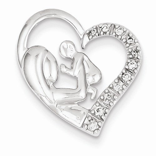 14k White Gold Mother and Baby Diamond Heart Pendant