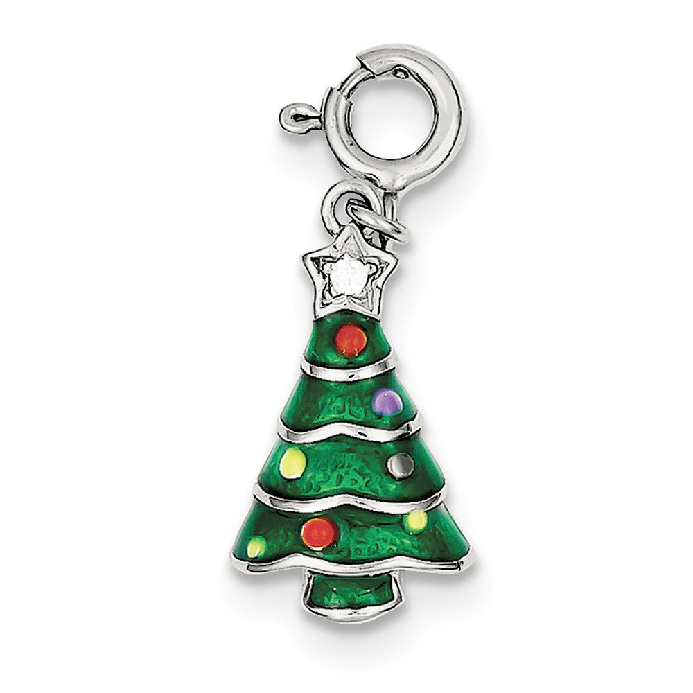 Sterling Silver CZ & Enameled Christmas Tree Charm hide-image
