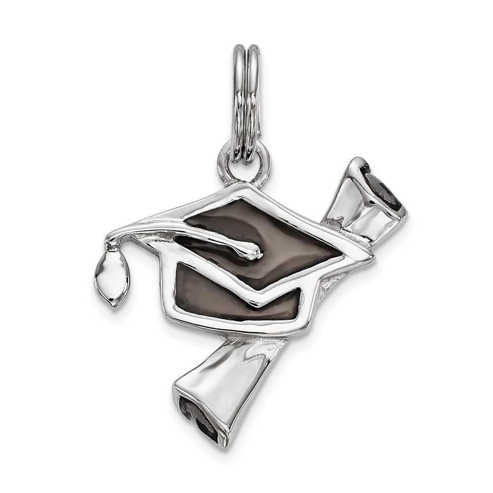 Yellow Enamel Graduation Cap & Diploma Charm in Sterling Silver