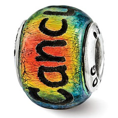 Protected by our 30 Day Money Back Guarantee! Size: 12.73 mm long x 9.09 mm wideMetal: Sterling SilverBead opening Diameter: 4 mmFits Pandora, Biagi, Chamilia & European BraceletsDichroic glass, Color range varies Free U.S. Shipping for orders over $50
