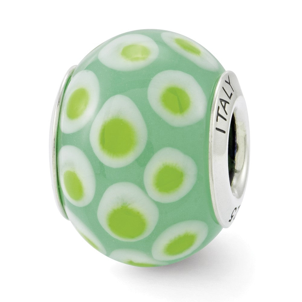 Green/White Italian Murano Glass Charm Bead in Sterling Silver