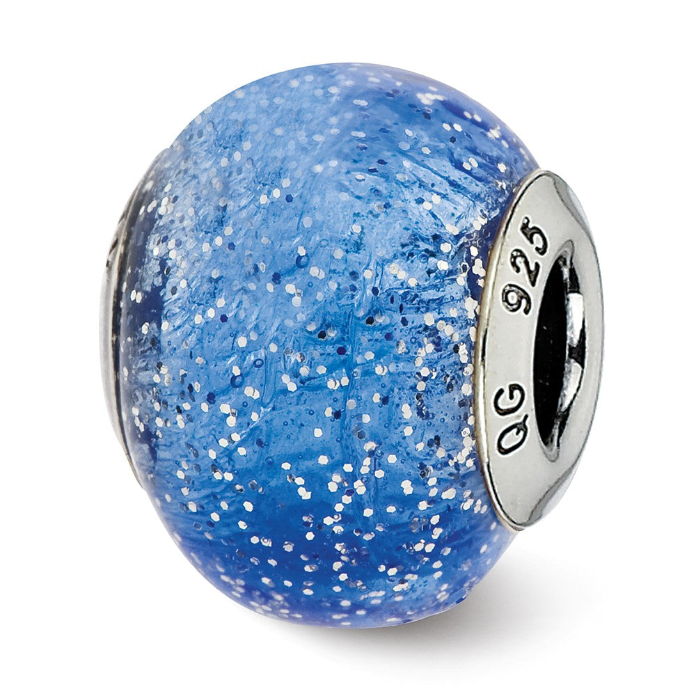 Italian Blue w/Silver Glitter Glass Charm Bead in Sterling Silver