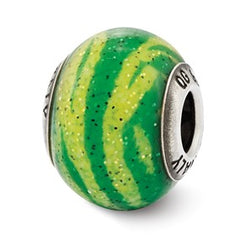 Sterling Silver Italian Green Stripes Glass Bead Charm hide-image