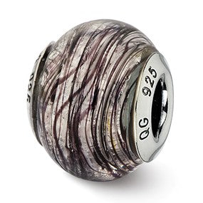 Italian Murano Purple Stripes Glass Charm Bead in Sterling Silver