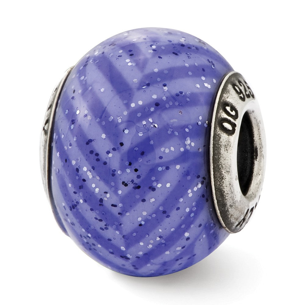 Sterling Silver Italian Purple Stripes w/Glitter Glass Bead Charm hide-image