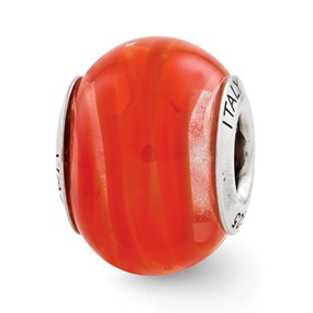 Orange/Red Italian Murano Glass Charm Bead in Sterling Silver