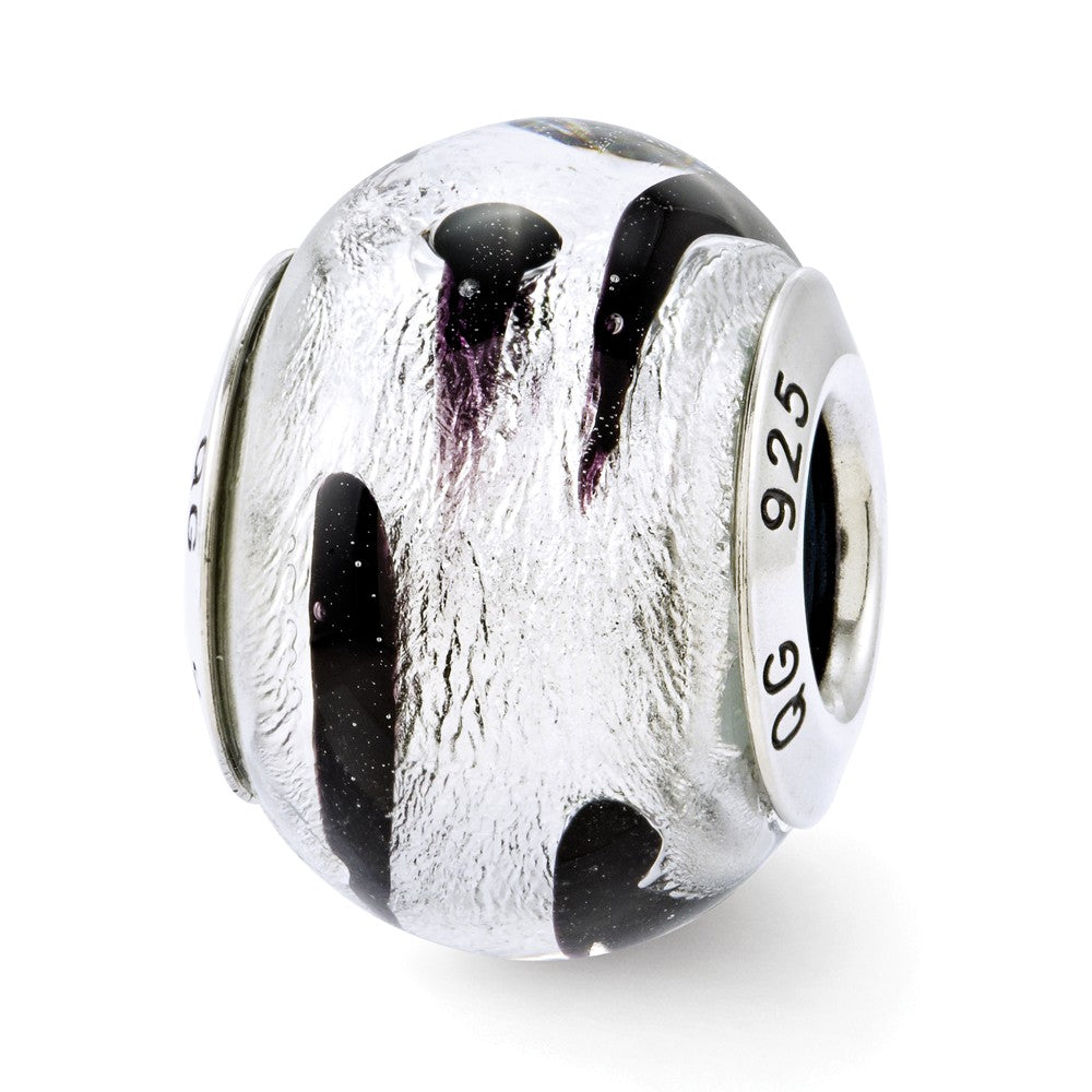 Silver/Black Italian Murano Glass Charm Bead in Sterling Silver