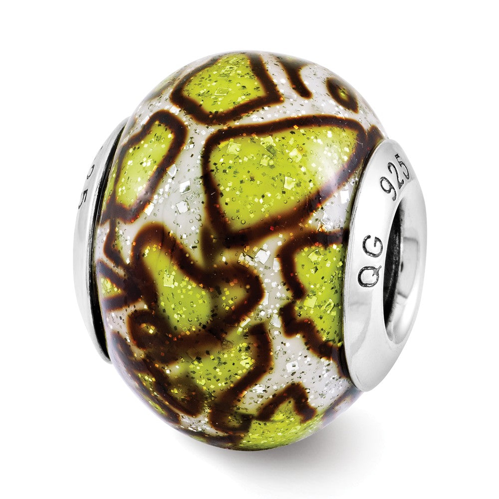 Yellow Print Overlay Italian Charm Bead in Sterling Silver