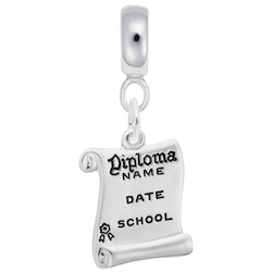 Move on to the next chapter of life. Your Sterling Silver engravable diploma charm dangle bead will mark your achievement forever! Place this charm dangle bead in your charm dangle bead collection today.