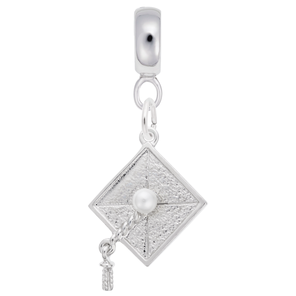 Graduation Cap Charm Dangle Bead In Sterling Silver