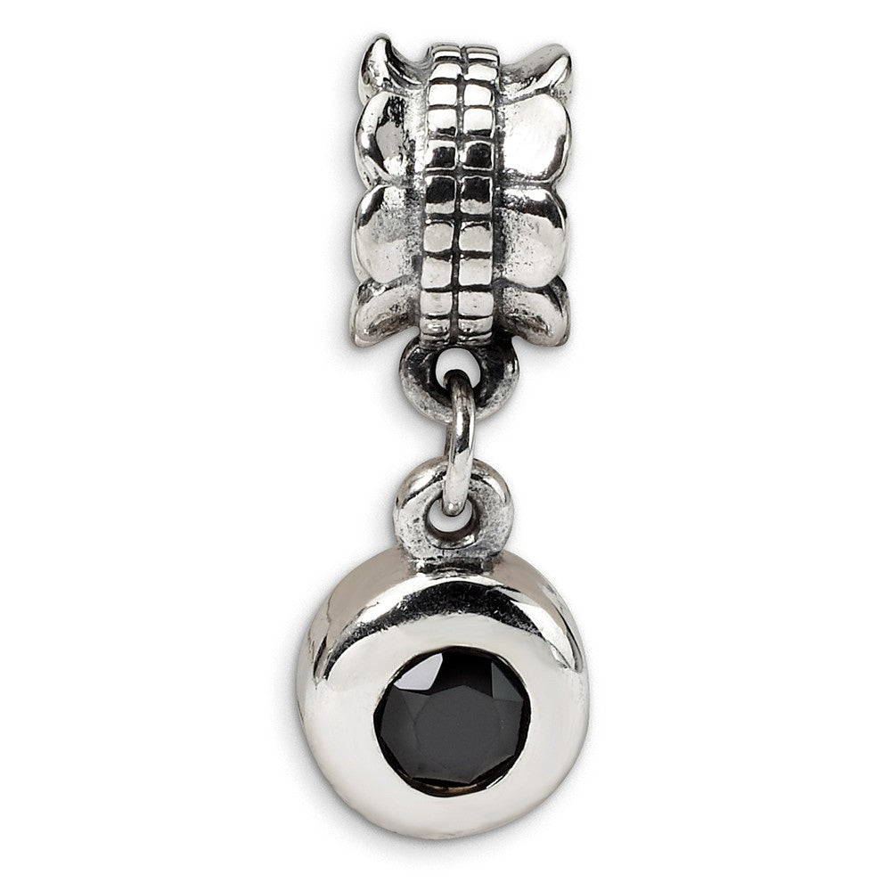 Black CZ Round Charm Dangle Bead in Sterling Silver