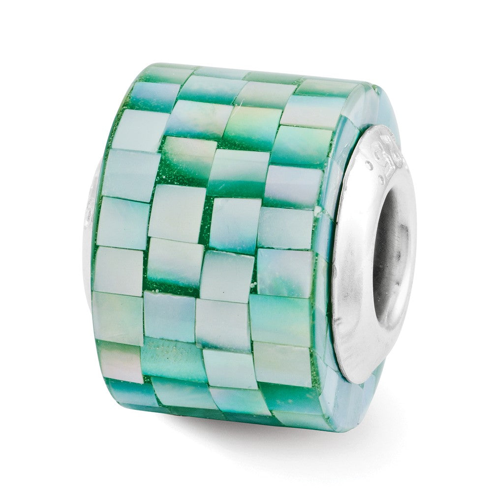 Green Mother of Pearl Mosaic Charm Bead in Sterling Silver