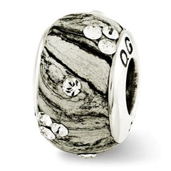 Grey Molded w/Swarovski Elements Charm Bead in Sterling Silver
