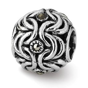 Sterling Silver Marcasite Bali Bead Charm hide-image