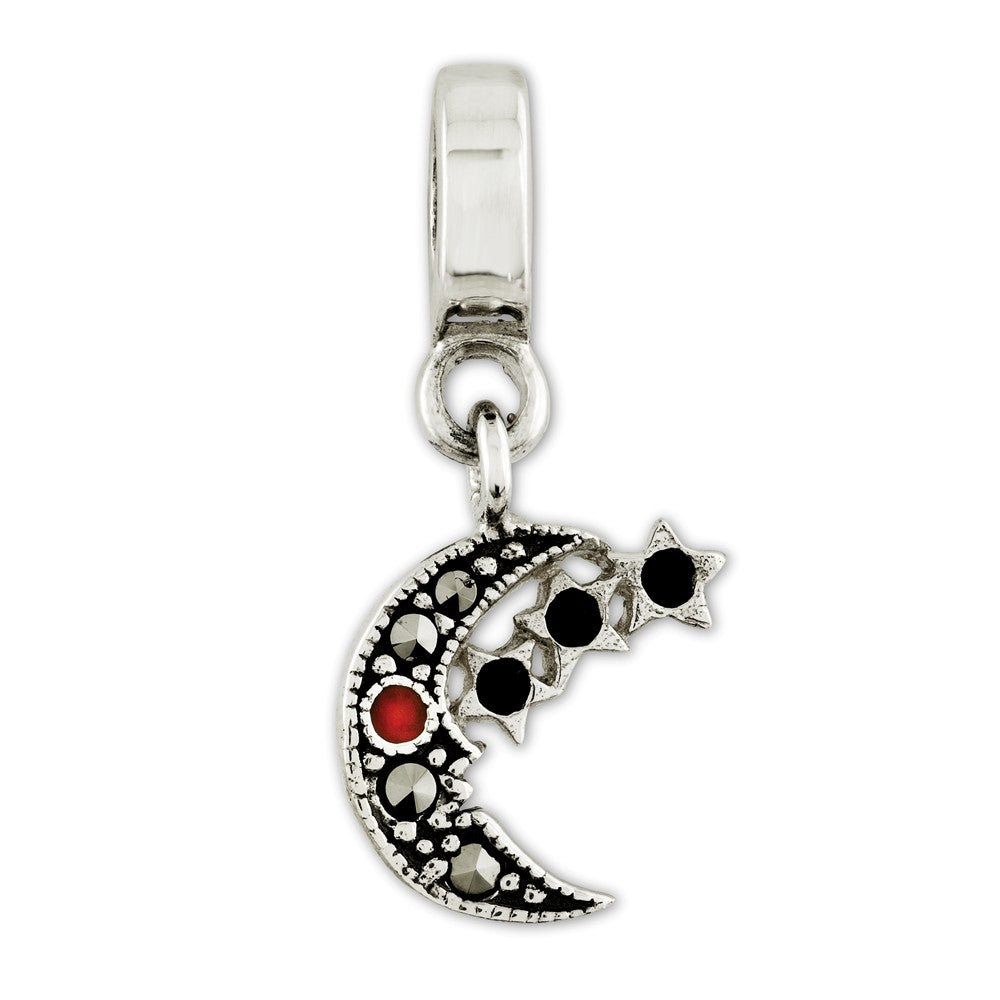 Marcasite Moon & Stars Charm Dangle Bead in Sterling Silver