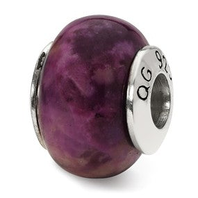 Purple Magnesite Stone Charm Bead in Sterling Silver