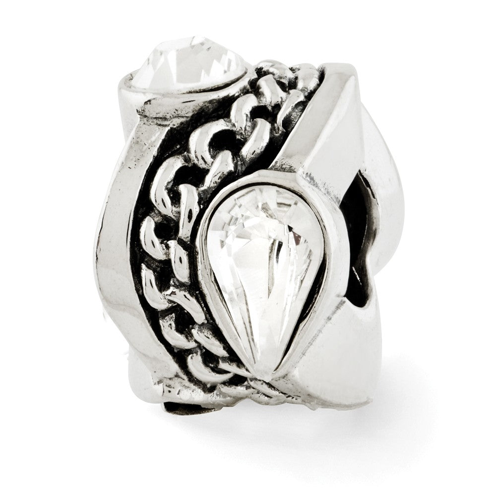 Swarovski Elements w/Chain Design Charm Bead in Sterling Silver