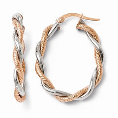 10K Two-tone Twisted Oval Hinged Hoop Earrings