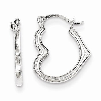 10K White Gold Hollow Heart Shaped Hoop Earrings