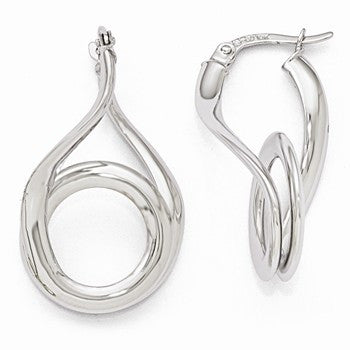 10k White Gold Polished Fancy Hinged Hoop Earrings