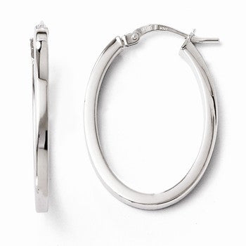 10k White Gold Polished Oval Hinged Hoop Earrings