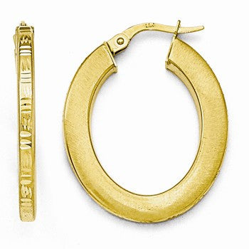10k Yellow Gold Polished Satin Diamond-cut Oval Hoop Earrings