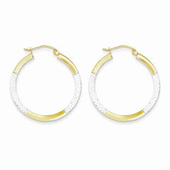 10K Yellow Gold with Rhodium Diamond-cut 2.5x20mm Hoop Earrings