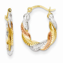 14k Tri-color Hollow Scalloped Hoop Earrings